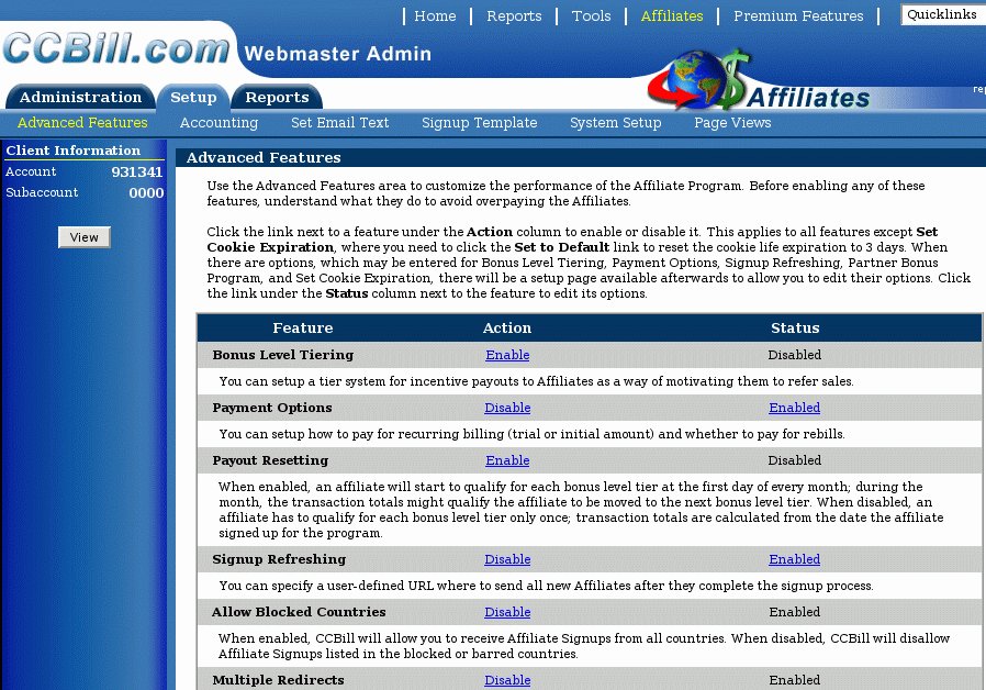 In the CCBill client admin interface go in the menu: Affiliates -> Setup -> Advanced Features